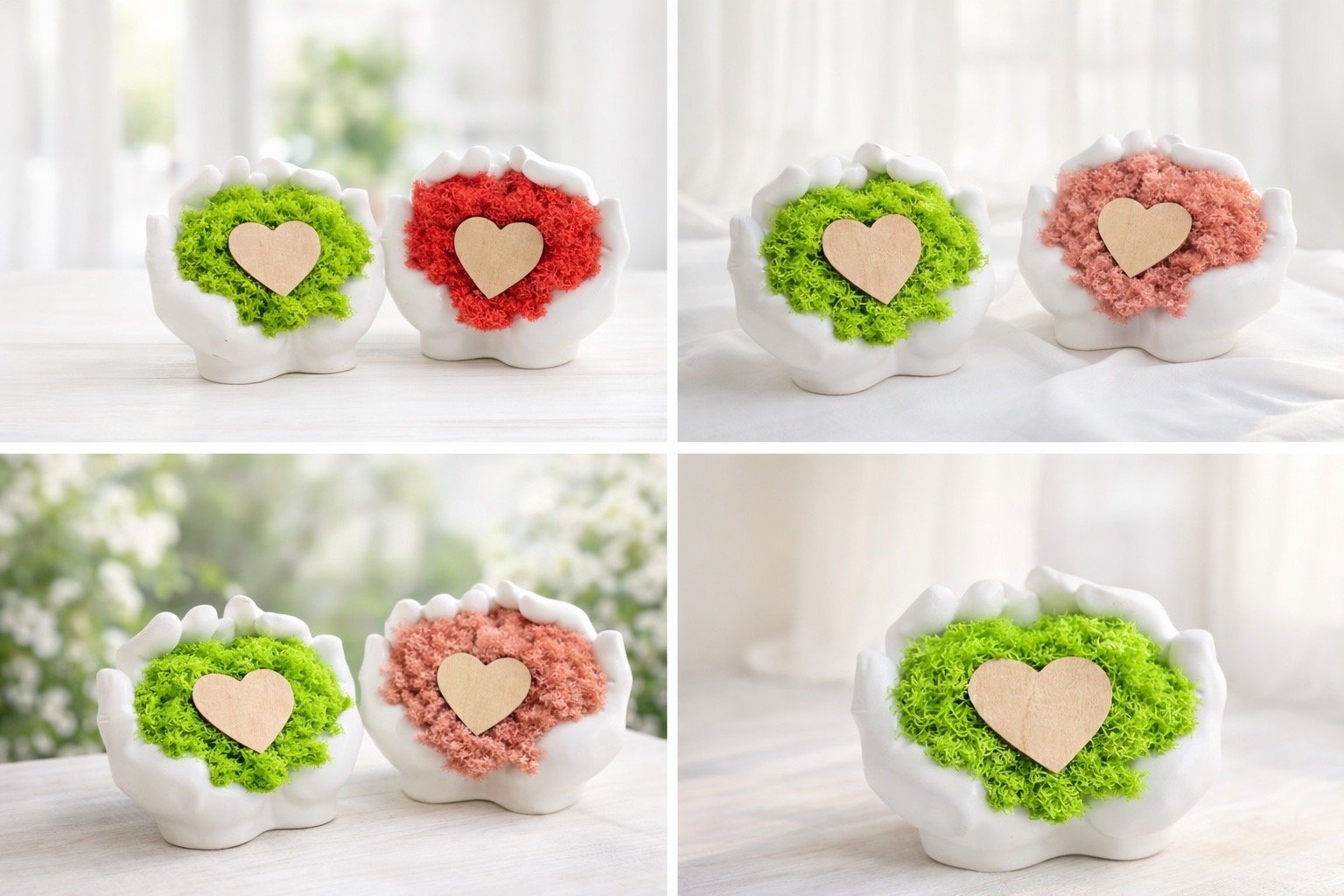 Гипсо-керамична кашпа , ръчно изработена със скандинавски мъх